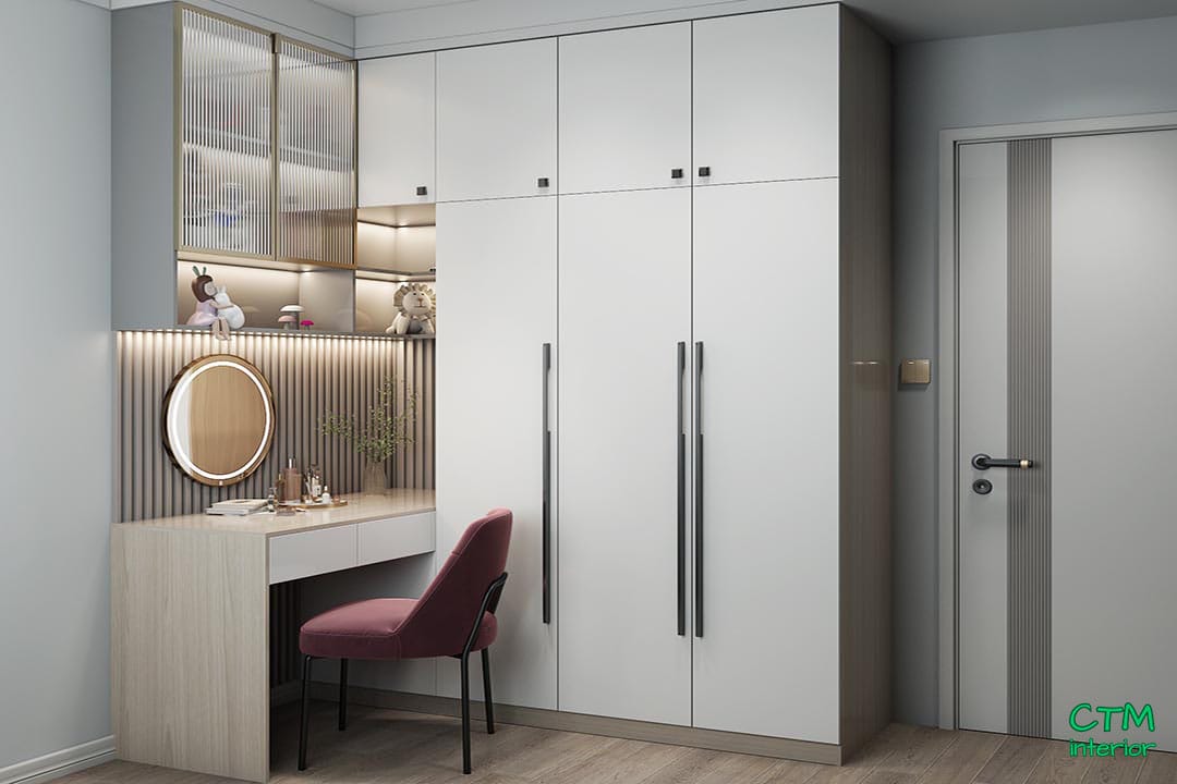 Tủ Quần Áo MDF Kịch Trần Kết Hợp Bàn Làm Việc Hiện Đại