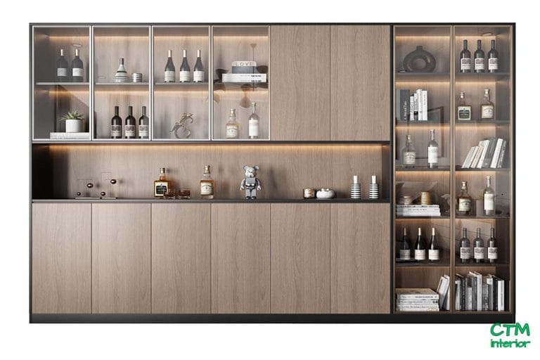 – Tủ rượu kết hợp kệ trang trí